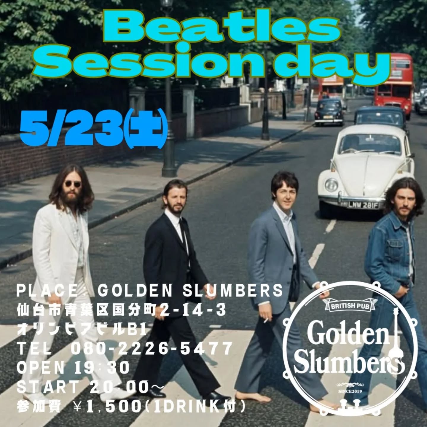 イベントのお知らせ♫ ♪ビートルズSession day♪ 2026.5.23㈯ Open19:30 Start 20:00〜 参加費¥1,500(1Drink付)
